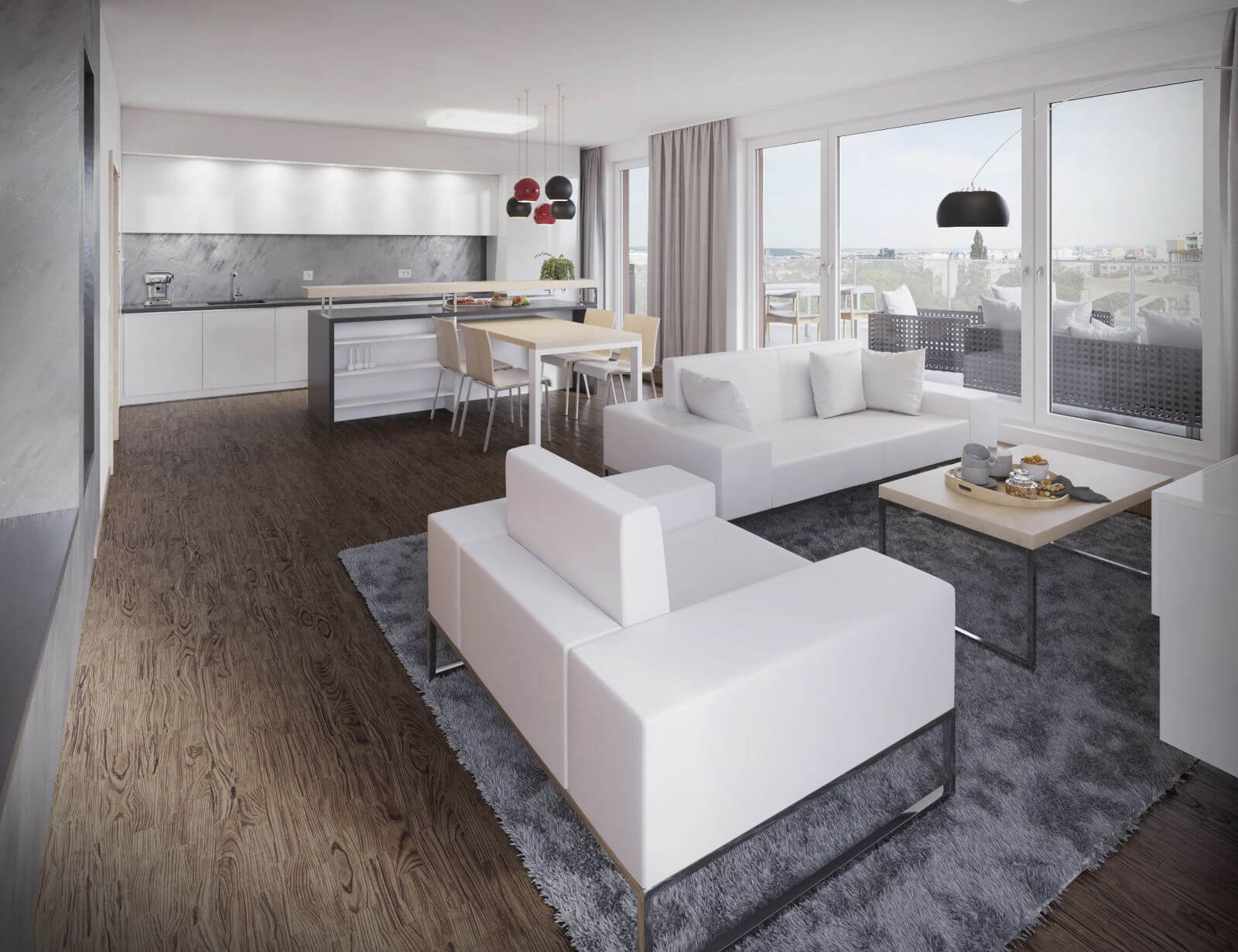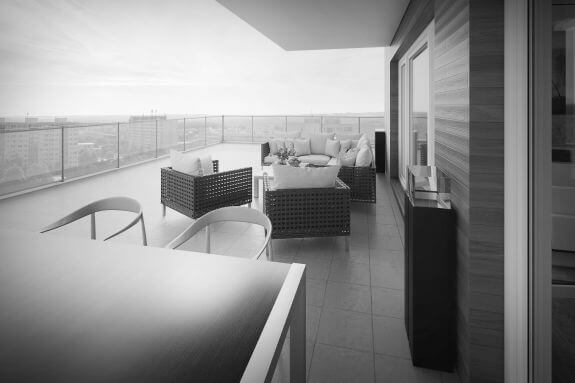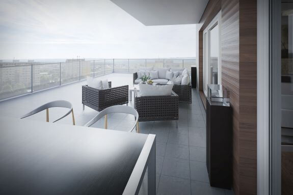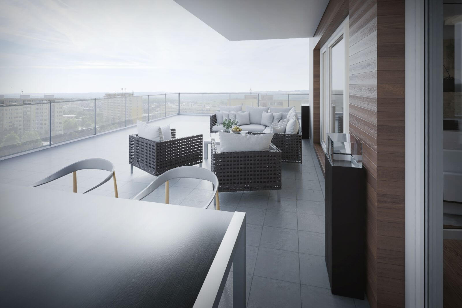 Interiér pro mladou rodinu se dvěma dětmi, byt 3 + kk s velkou terasou kolem celého bytu.