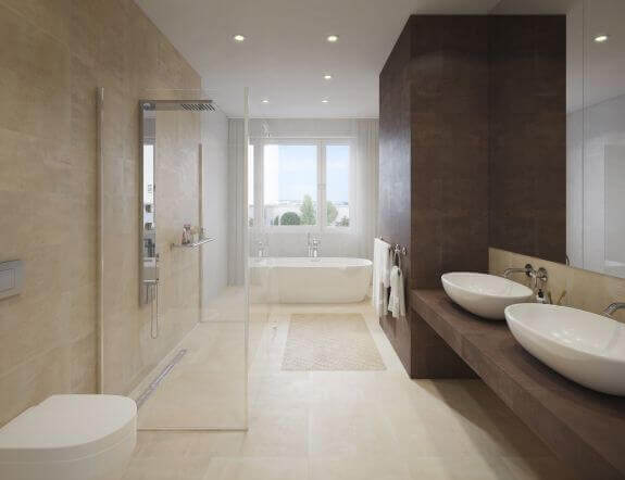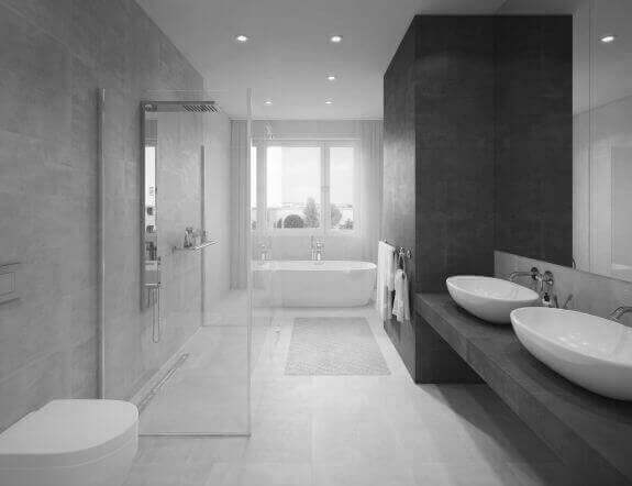 Pro koupelnu jsme vytvořili vzdušné, dynamické řešení, vysoce komfortní i praktické, zároveň však s prvkem luxusu v podobě nádherné prostorové vany u okna. Abychom dosáhli čistých linií a uklizeného dojmu, schovali jsme všechny skříňky za zrcadlo a prostorný sprchový kout naopak nechali průhledný. Dvojité umyvadlo je v ranním shonu čtyřčlenné rodiny nedocenitelné.